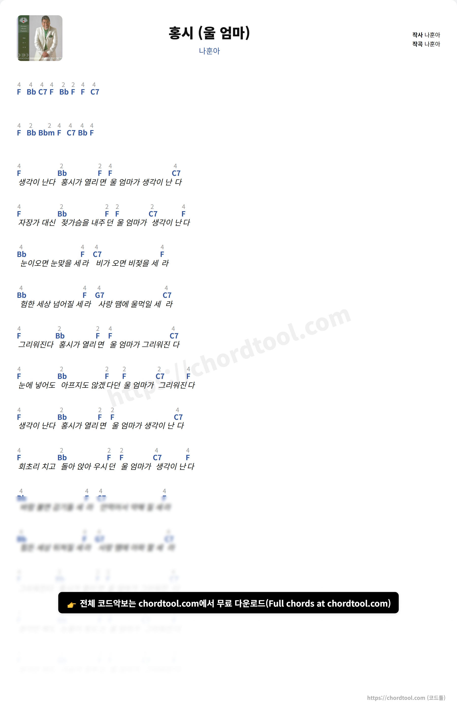 홍시 (울 엄마)는 가사만 찾는 사용자뿐 아니라 기타 코드, 우쿨렐레 코드, 피아노 코드까지 함께 찾는 경우가 많습니다.