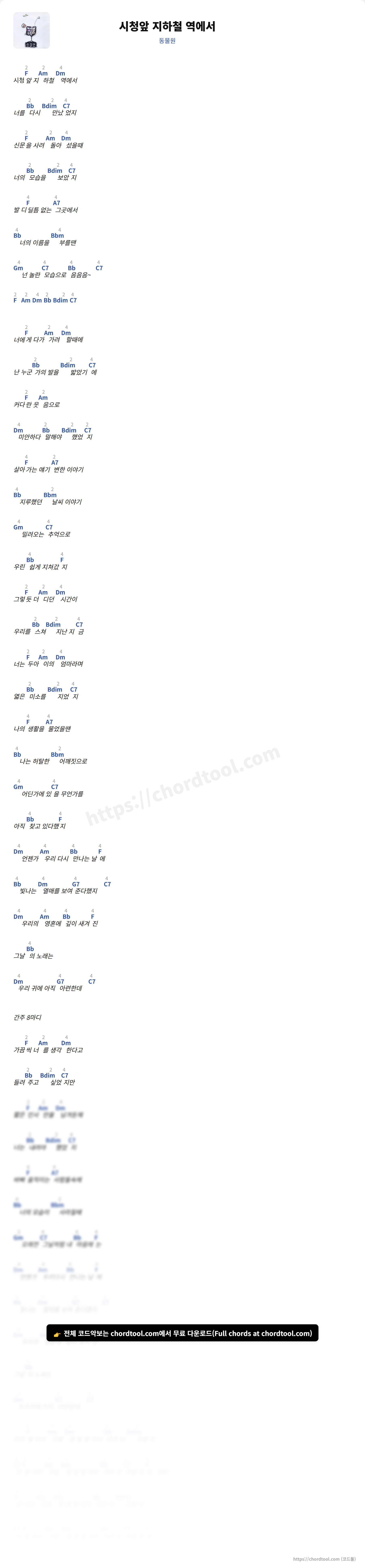 동물원의 시청앞 지하철 역에서 가사를 확인할 수 있습니다. 곡 정보와 함께 연주에 필요한 코드, 악보 제공 여부도 함께 정리했습니다.