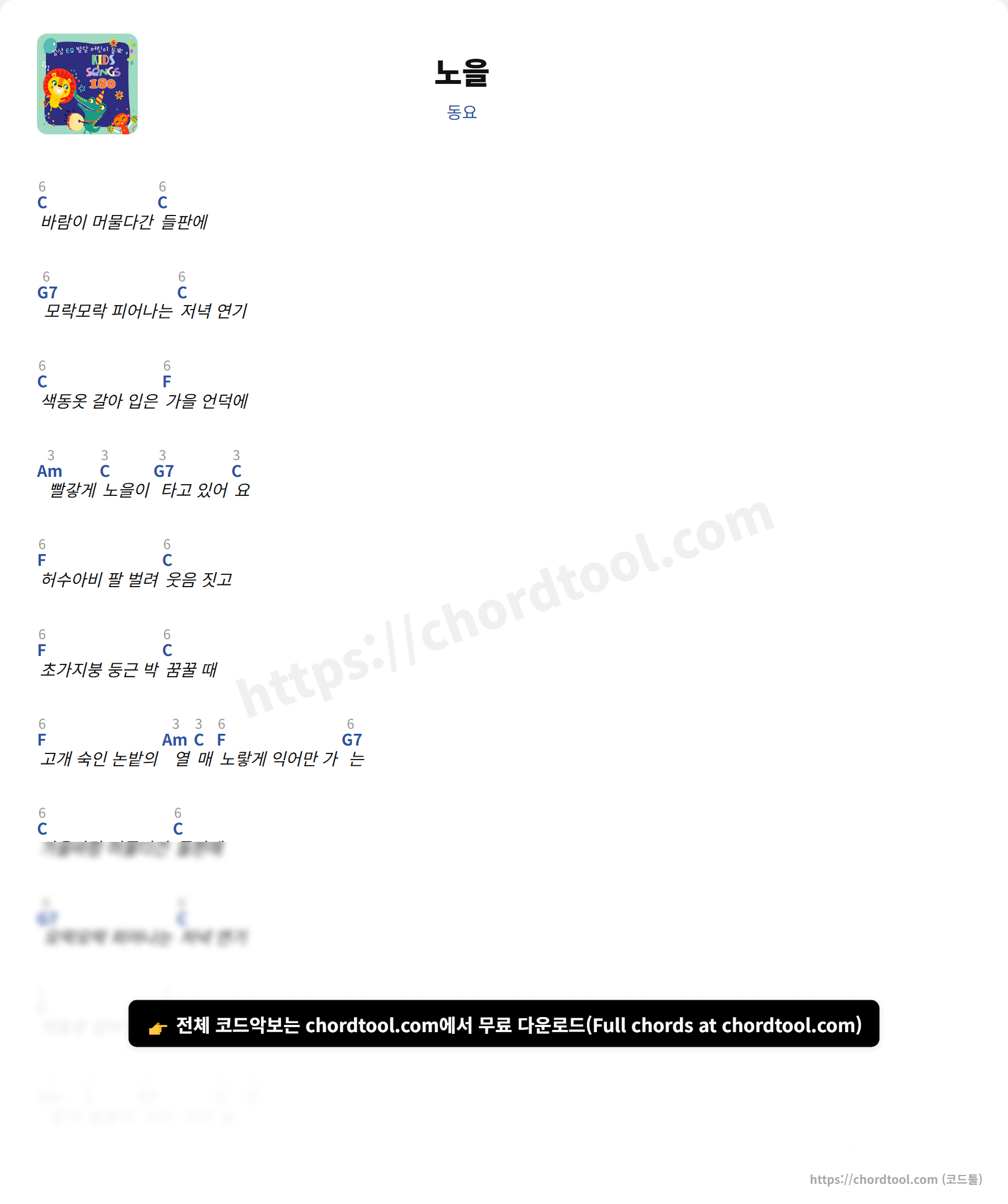 노을는 가사만 찾는 사용자뿐 아니라 기타 코드, 우쿨렐레 코드, 피아노 코드까지 함께 찾는 경우가 많습니다.