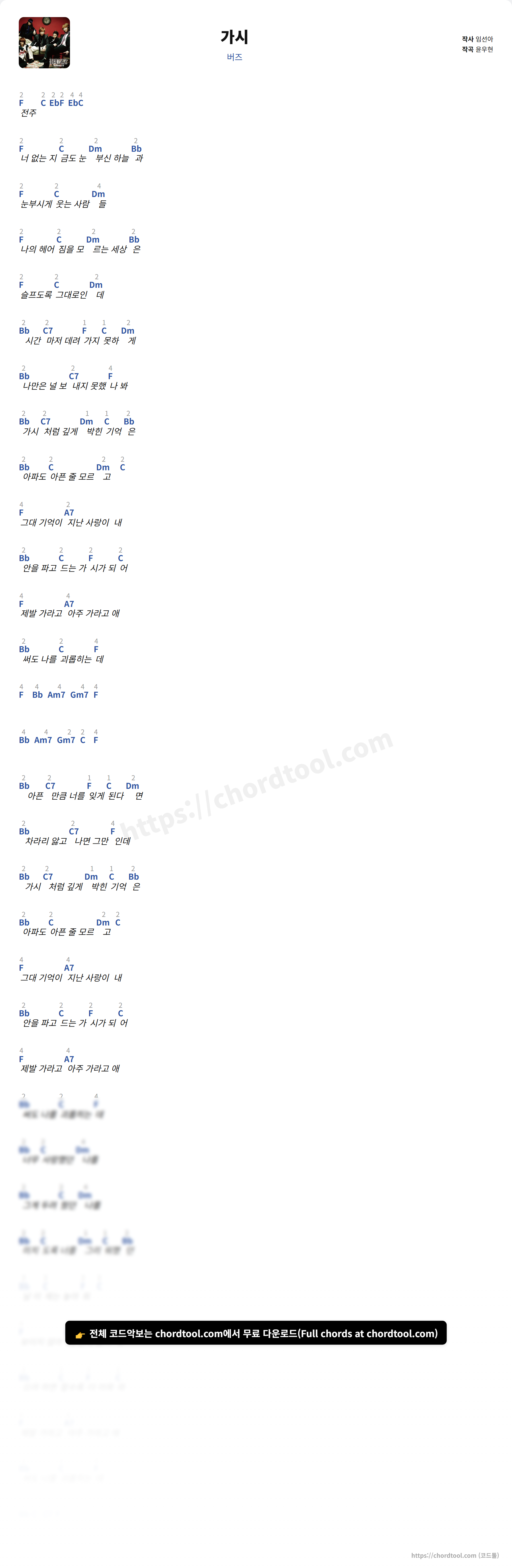 버즈의 가시 가사를 확인할 수 있습니다. 곡 정보와 함께 연주에 필요한 코드, 악보 제공 여부도 함께 정리했습니다.