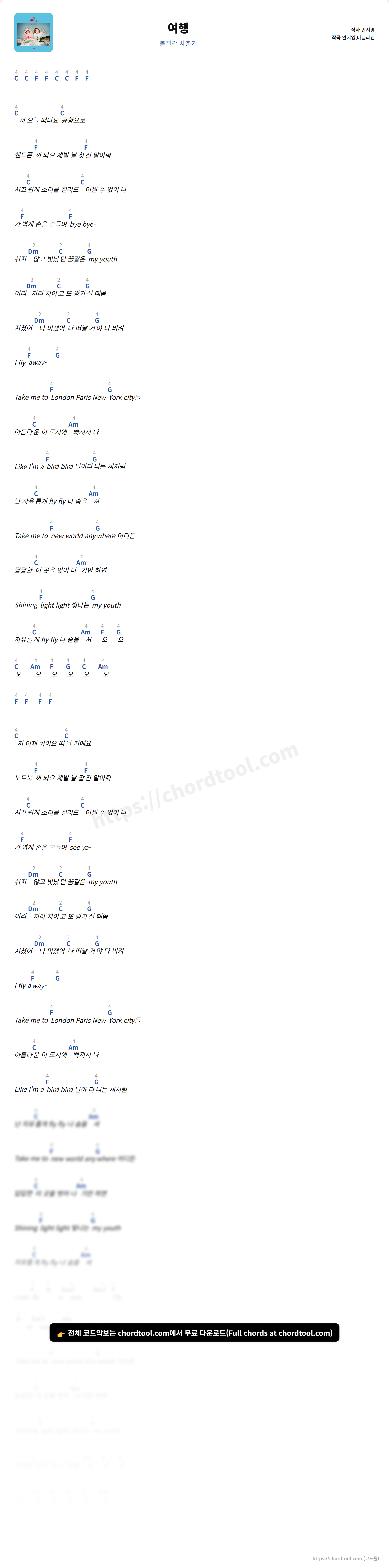 여행는 가사만 찾는 사용자뿐 아니라 기타 코드, 우쿨렐레 코드, 피아노 코드까지 함께 찾는 경우가 많습니다.