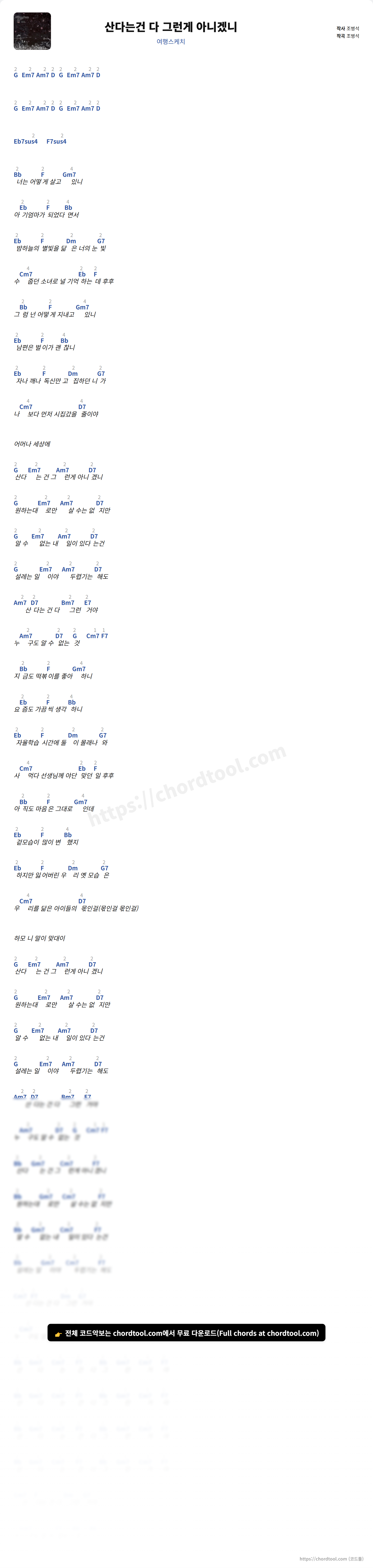 산다는건 다 그런게 아니겠니는 가사만 찾는 사용자뿐 아니라 기타 코드, 우쿨렐레 코드, 피아노 코드까지 함께 찾는 경우가 많습니다.