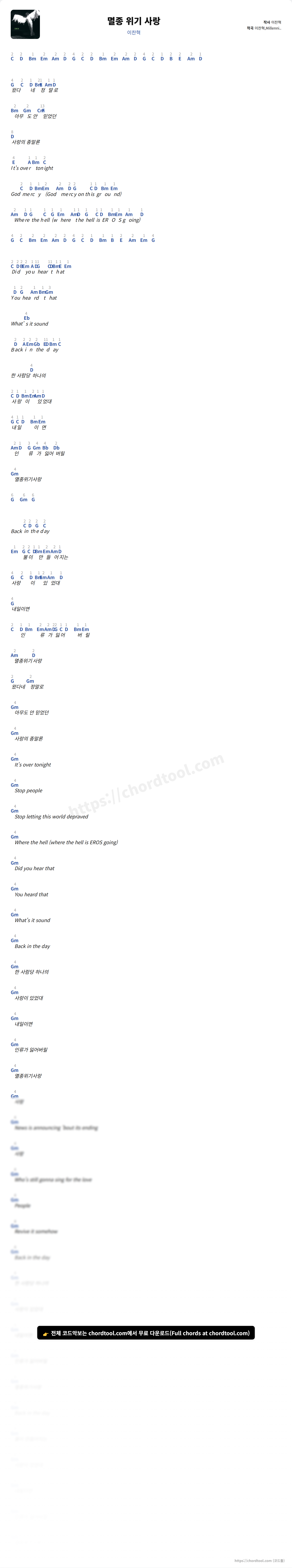 멸종 위기 사랑는 가사만 찾는 사용자뿐 아니라 기타 코드, 우쿨렐레 코드, 피아노 코드까지 함께 찾는 경우가 많습니다.