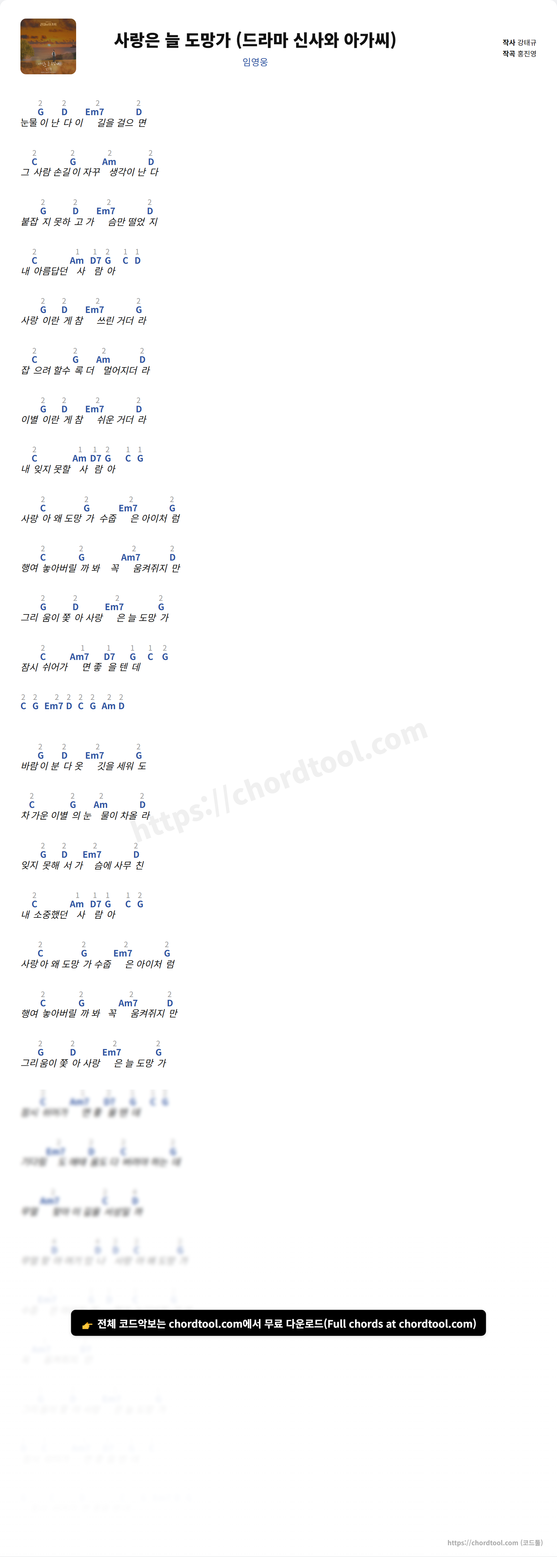 임영웅의 사랑은 늘 도망가 (드라마 신사와 아가씨) 가사를 확인할 수 있습니다. 곡 정보와 함께 연주에 필요한 코드, 악보 제공 여부도 함께 정리했습니다.