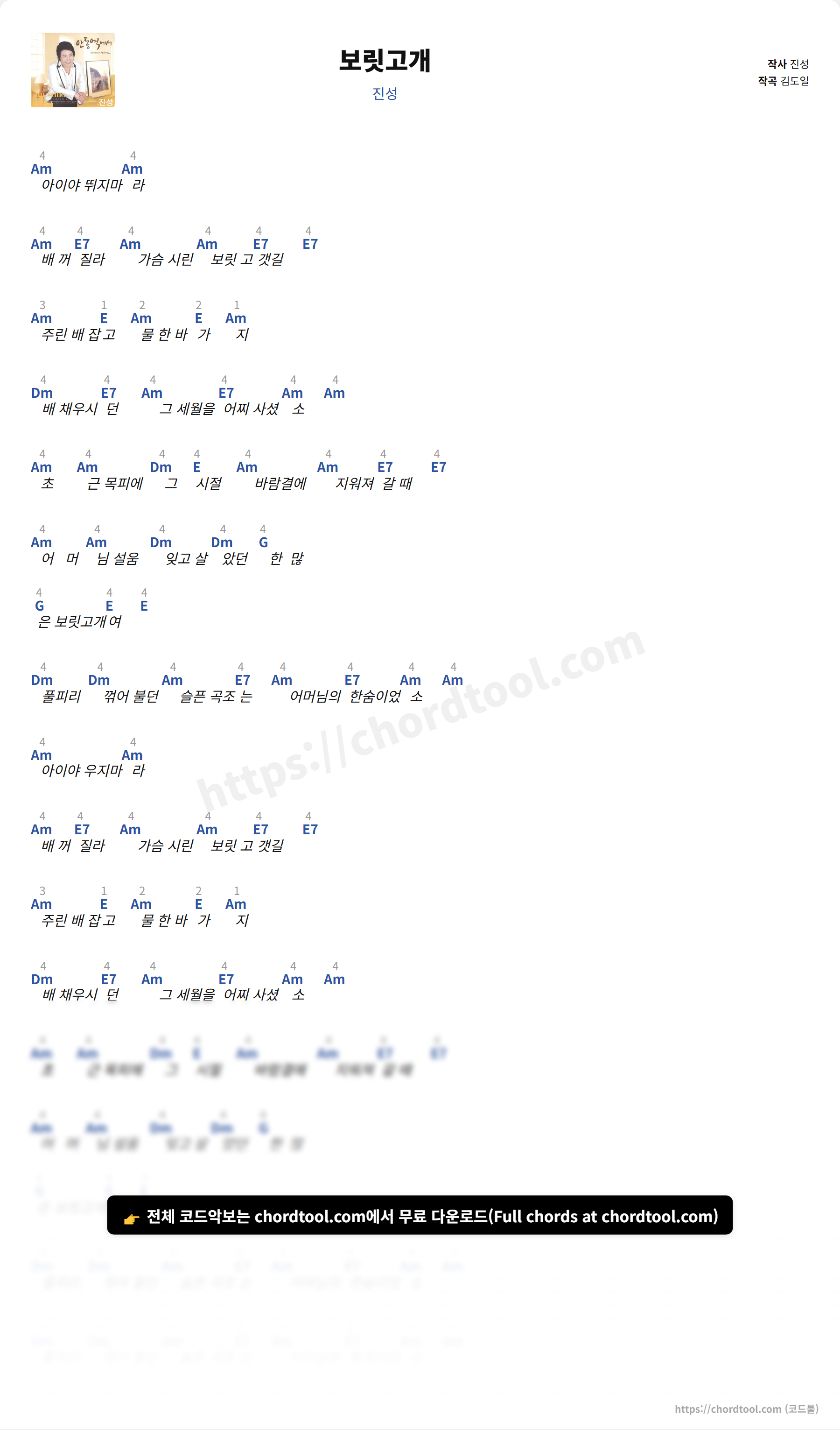 진성의 보릿고개 가사를 확인할 수 있습니다. 곡 정보와 함께 연주에 필요한 코드, 악보 제공 여부도 함께 정리했습니다.