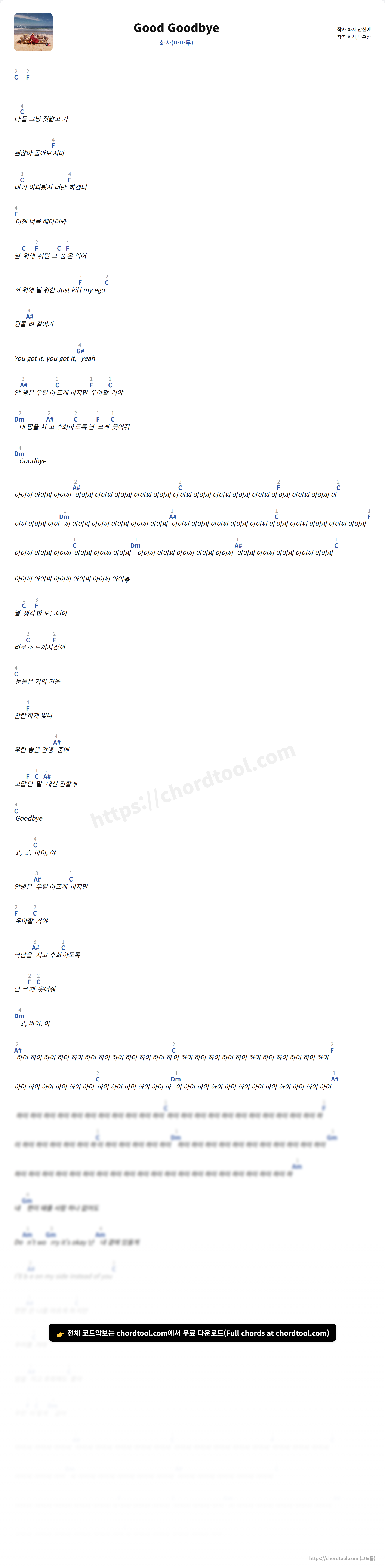 화사(마마무)의 Good Goodbye 가사를 확인할 수 있습니다. 곡 정보와 함께 연주에 필요한 코드, 악보 제공 여부도 함께 정리했습니다.