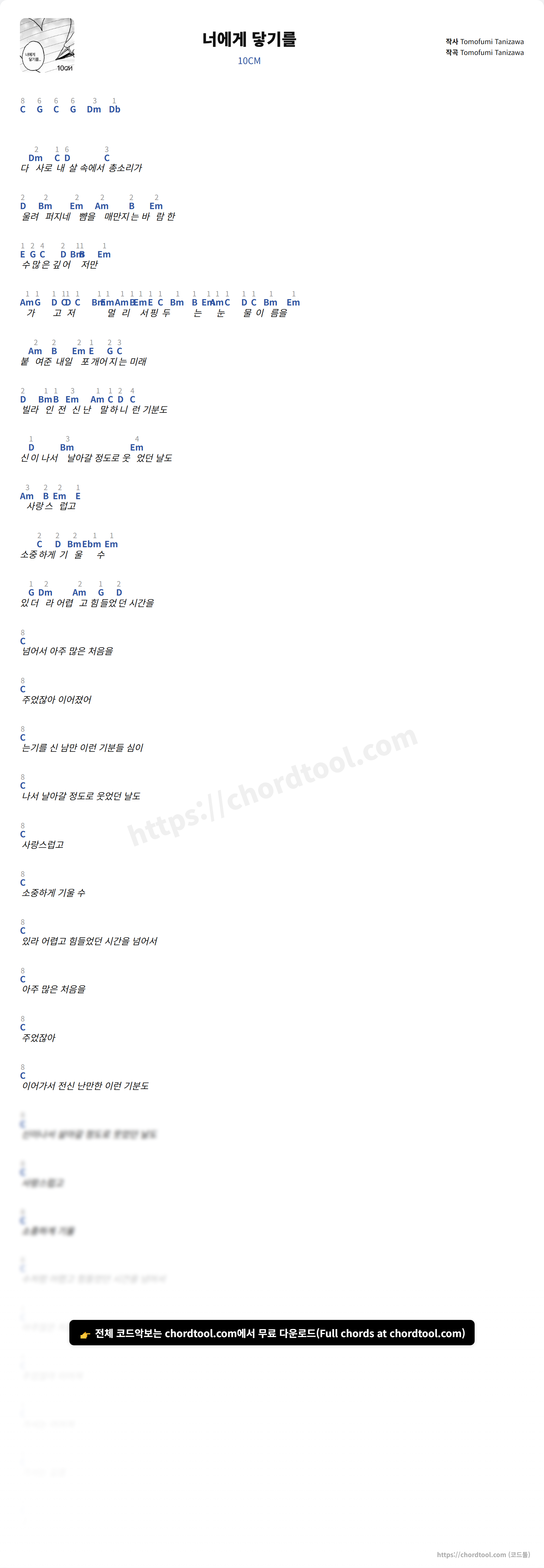 10CM의 너에게 닿기를 가사를 확인할 수 있습니다. 곡 정보와 함께 연주에 필요한 코드, 악보 제공 여부도 함께 정리했습니다.