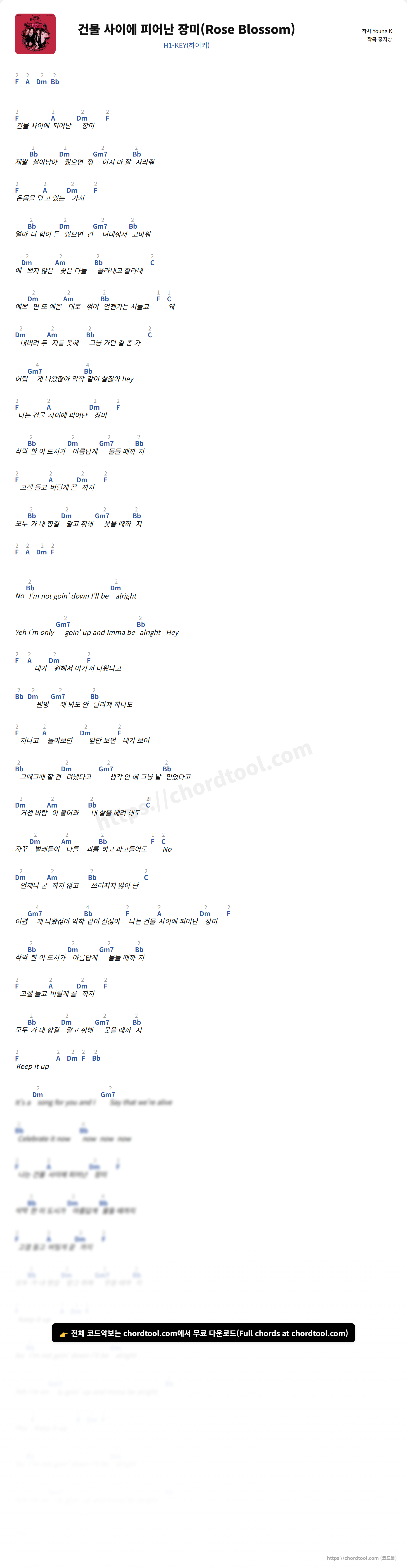 H1-KEY(하이키)의 건물 사이에 피어난 장미(Rose Blossom) 가사를 확인할 수 있습니다. 곡 정보와 함께 연주에 필요한 코드, 악보 제공 여부도 함께 정리했습니다.